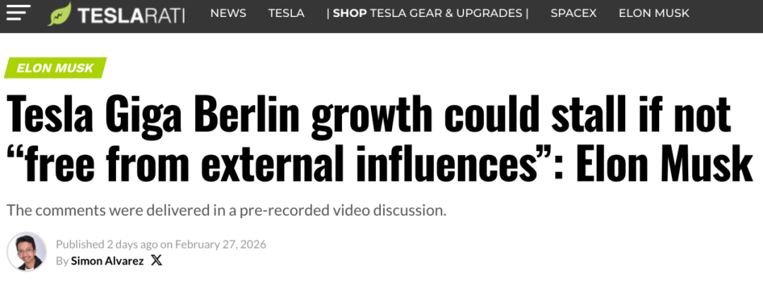 3月1日消息,据teslarati报道,特斯拉首席执行官埃隆·马斯克近日在一段预先录制的视频讲话中向德国员工发出明确信号:若柏林超级工厂无法维持“不受外部影响”的运营环境,其未来的扩张计划或将面临停滞风险。